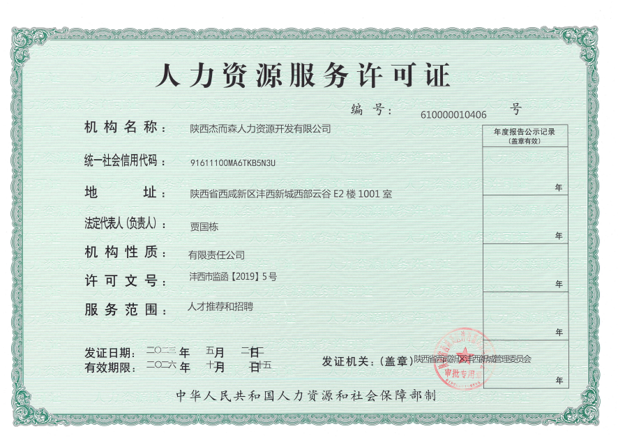 陜西杰而森人力資源開(kāi)發(fā)有限公司成立于2018年,是一家以人力資源服務(wù)為主業(yè)的市場(chǎng)化專(zhuān)業(yè)機(jī)構(gòu)。公司總部位于陜西省西咸新區(qū)秦創(chuàng)原人才大市場(chǎng),下設(shè)6家分子公司。公司的主營(yíng)業(yè)務(wù)包括:勞務(wù)派遣、勞務(wù)外包、業(yè)務(wù)流程外包、招聘、培訓(xùn)、檔案整理和電子化等服務(wù)。